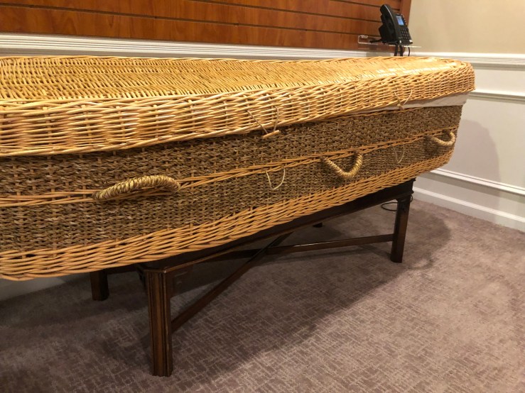 Preferring a simple pine or wicker casket, this environmentally-friendly option does not use wood, metal, or concrete, with the inside lined with untreated natural fabrics. Some green burials consist of shrouds only, the garment covering those laid to rest, omitting the casket all together.